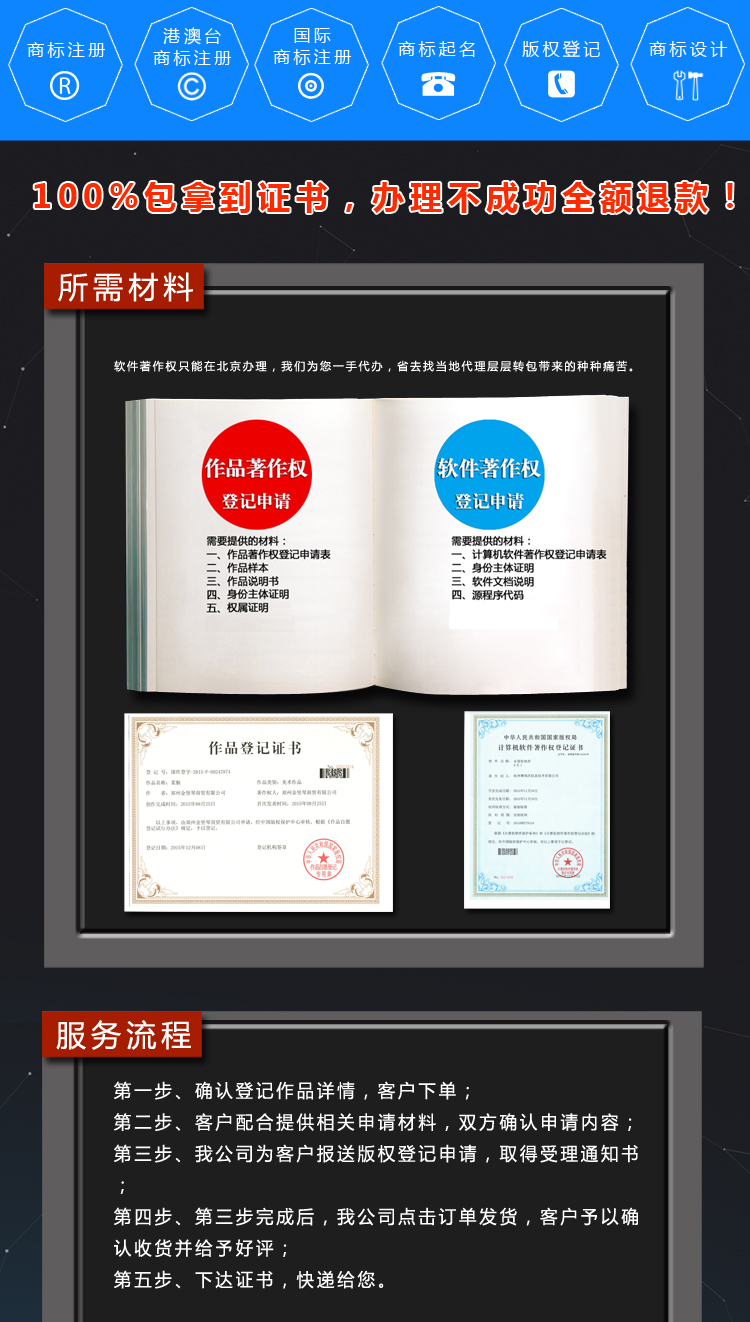 商品名称:软件著作权加急(11-15工作日,含官费,代理费,加急费)