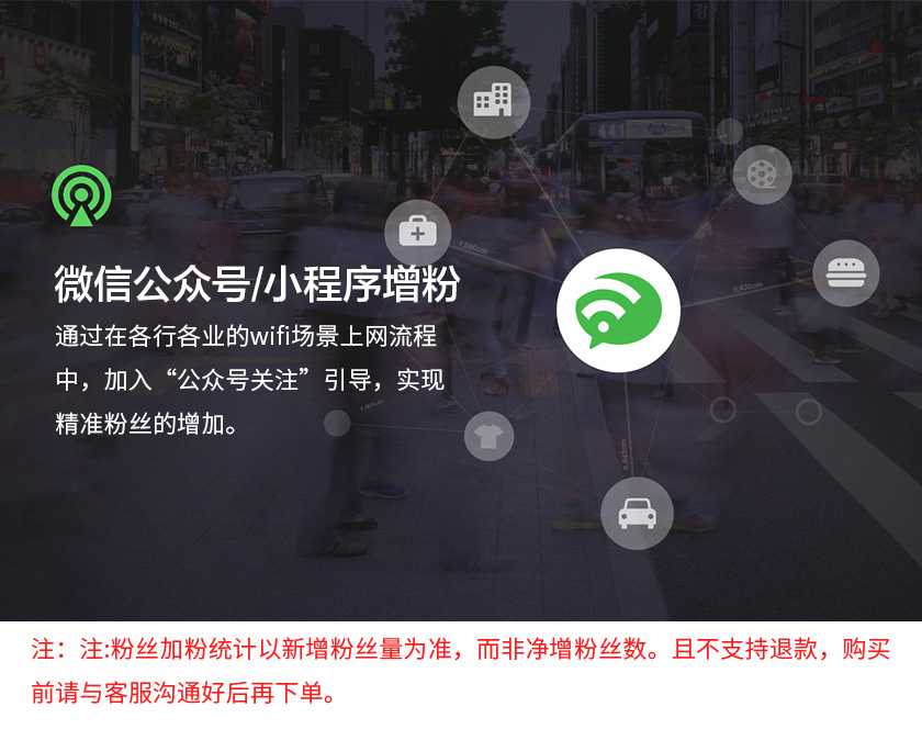 商品名称:微信公众号/小程序全国精准粉丝(wifi,摇一摇场景)